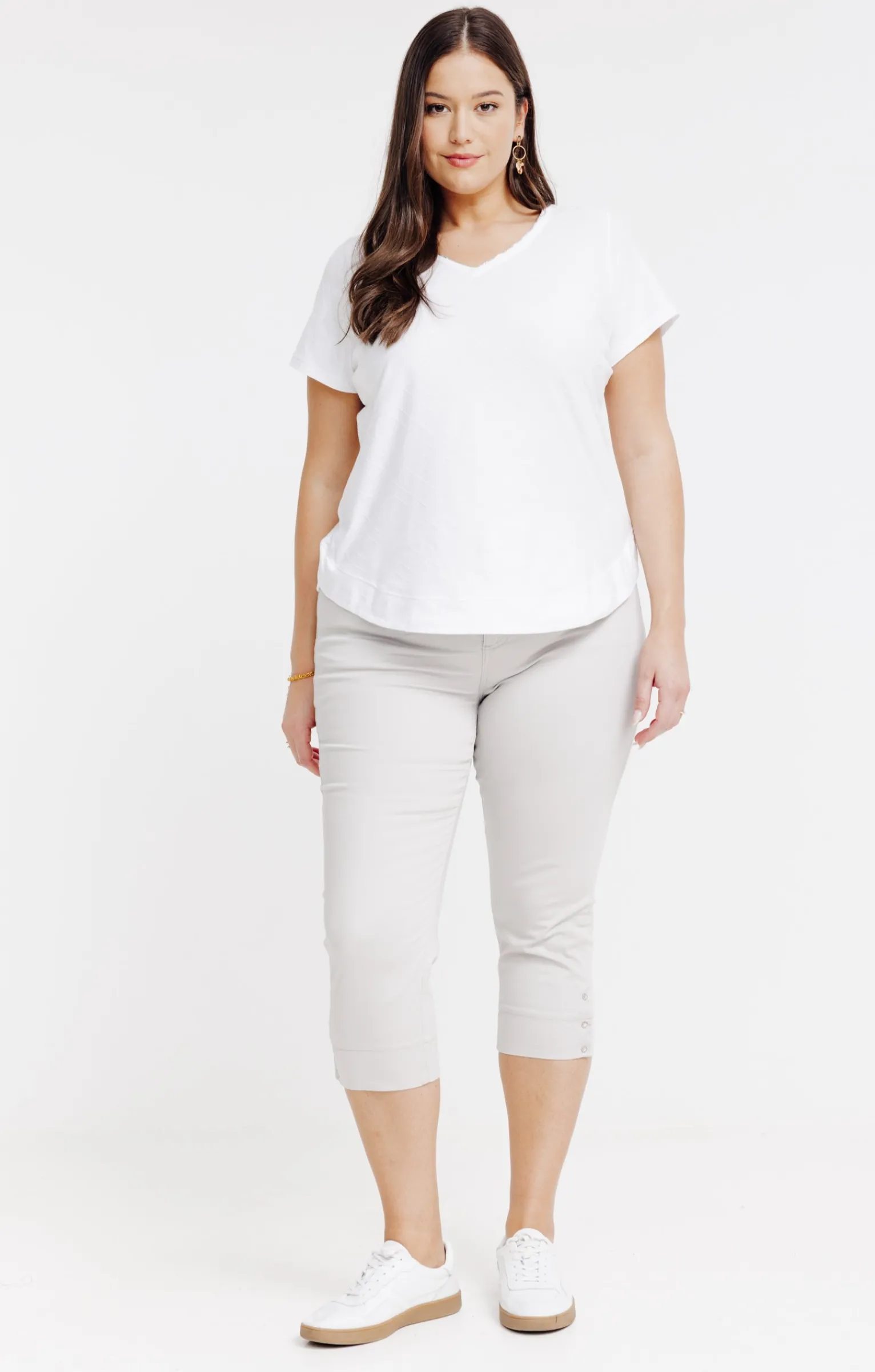 Notre mannequin Delia mesure 1m71 et porte un pantacourt taille 1.