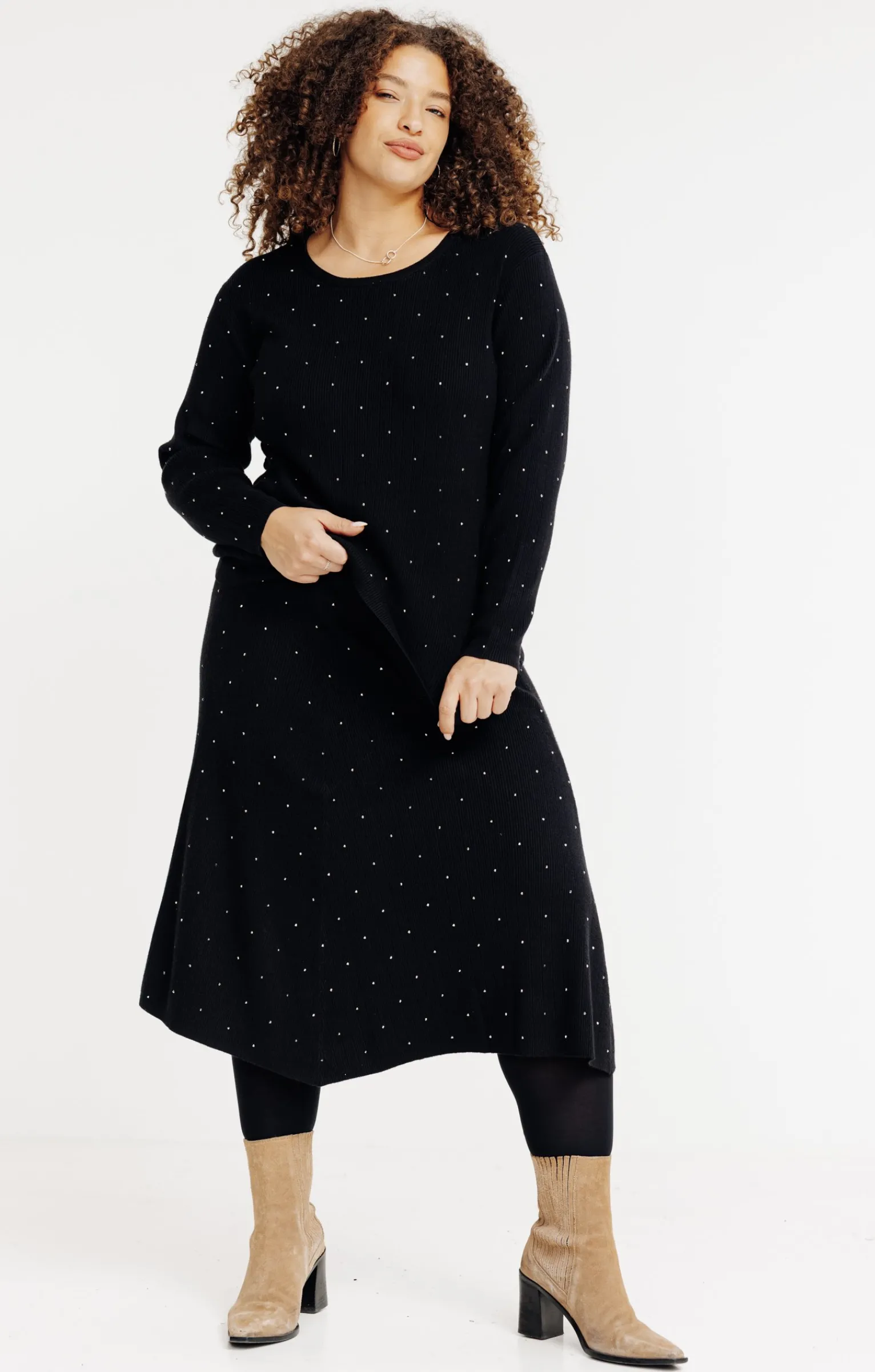 Notre mannequin Delia mesure 1m71 et porte un pull taille 1.