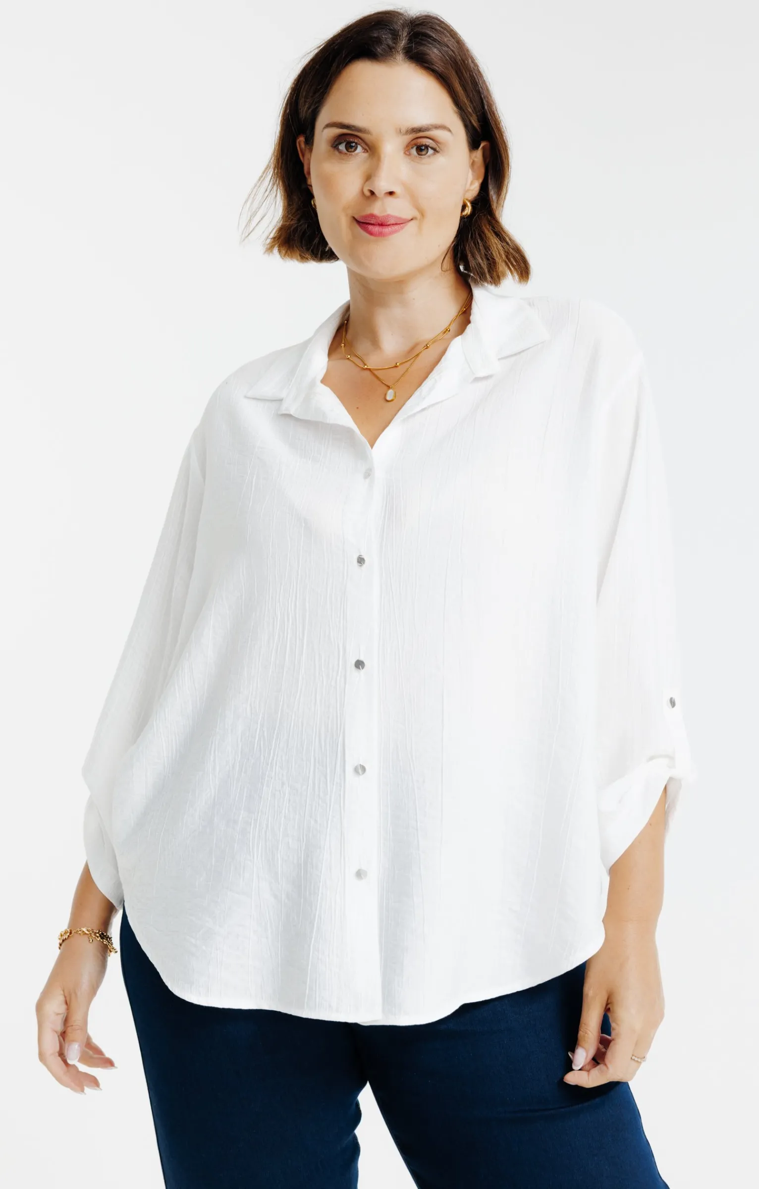 Cette chemise fait partie des basiques indispensables, faciles à assortir. Chemise unie à manches 3/4. Coupe droite et ample. Manches 3/4 ajustables par une patte boutonnée. Col chemise. Fermeture boutonnée sur le devant. Coloris uni. Matière texturée. Découpe horizontale dans le haut du dos. Bas liquette.