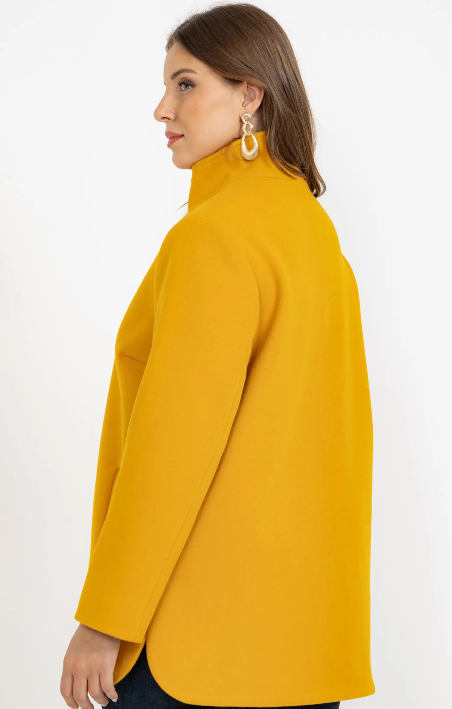 Notre mannequin Beatrice mesure 1m77 et porte un manteau taille 1.
