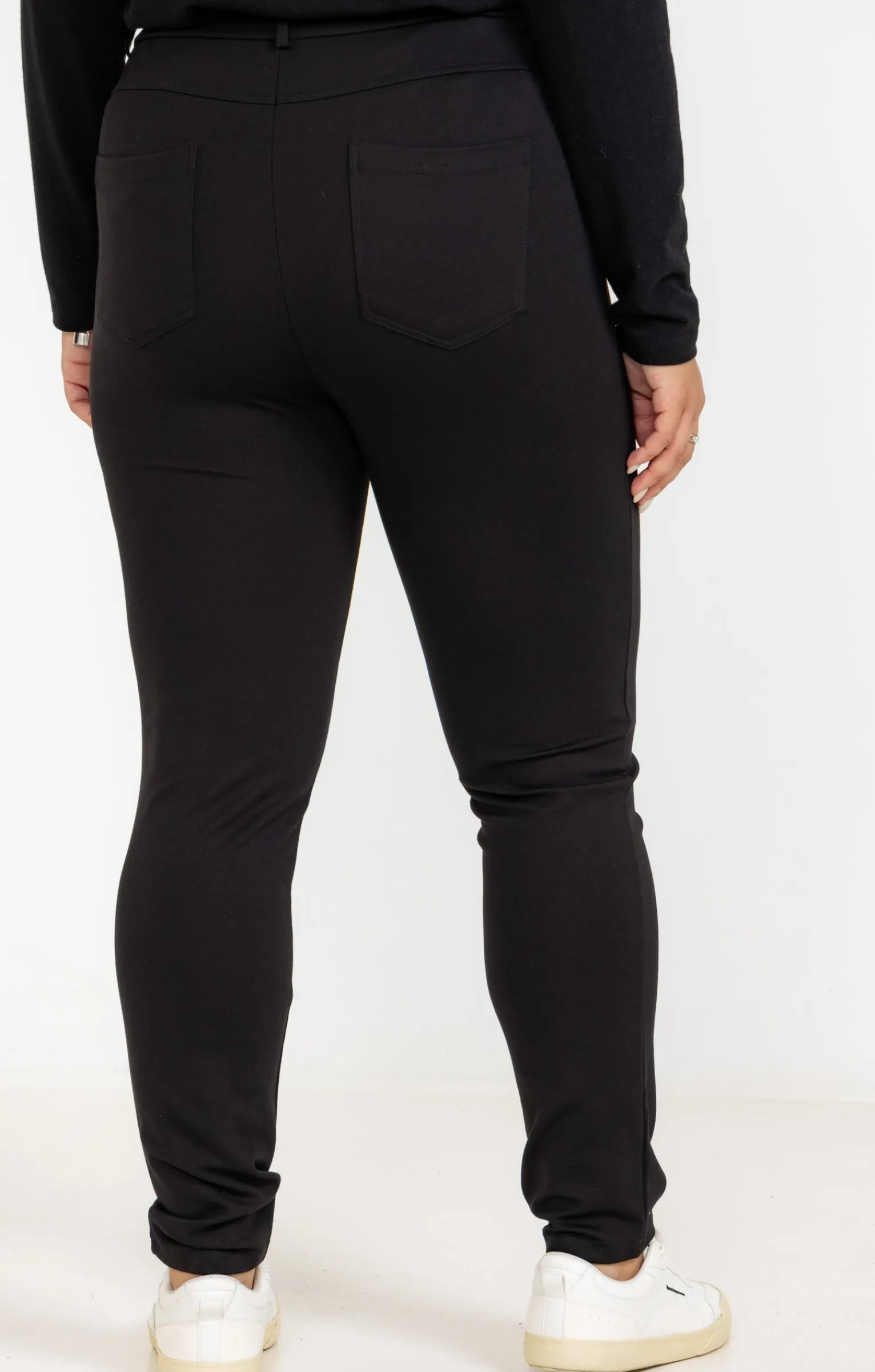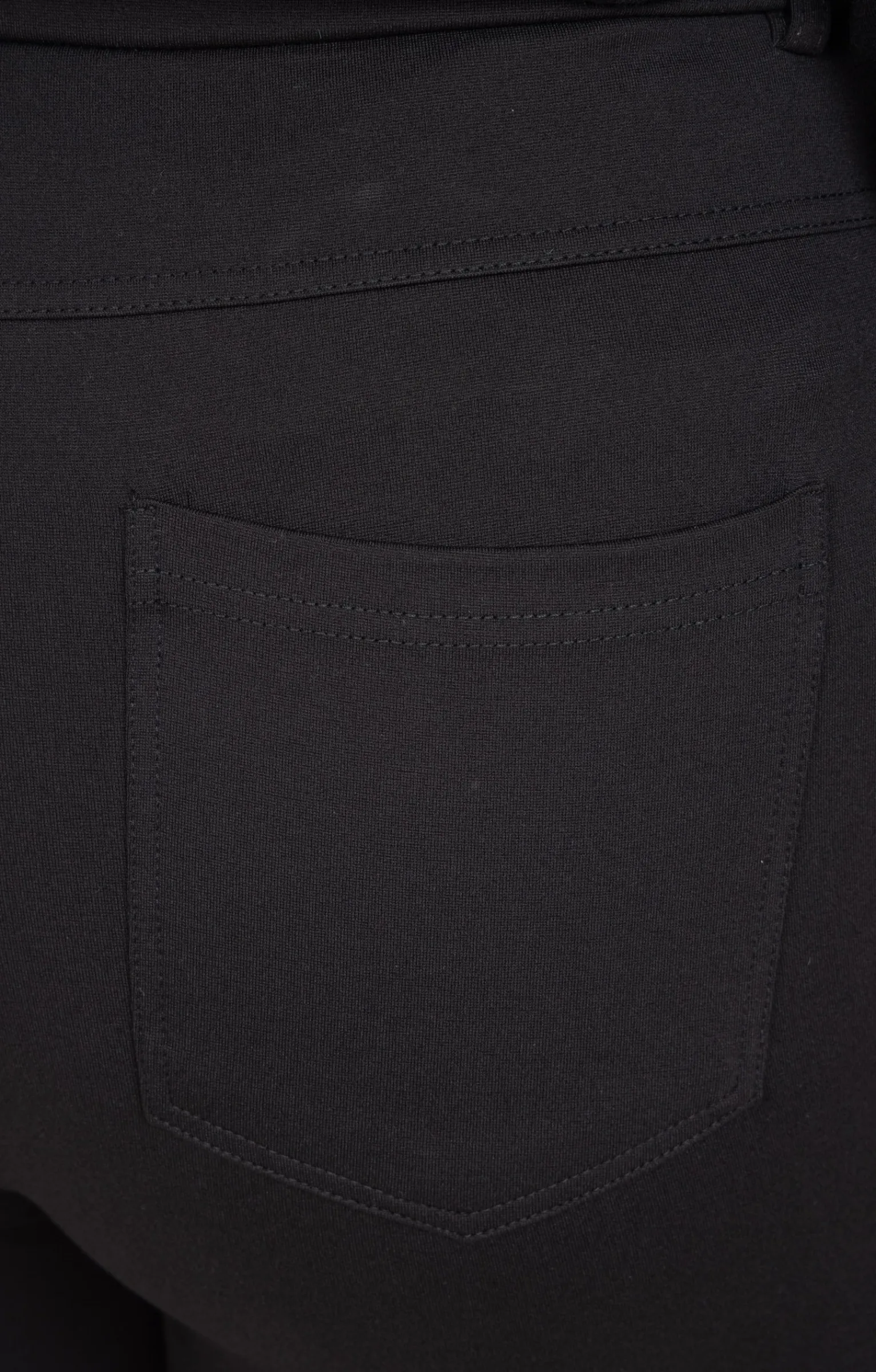 Tregging uni avec strass discrets. Coupe ajustée. Fausse fermeture zippée avec large ceinture élastiquée. 2 fausses poches italiennes devant. 2 poches plaquées au dos. Coloris uni. Tissu extensible à texture lisse. Strass ton sur ton sur les poches devant. Plis surpiqués le long des jambes. Passants pour ceinture. Surpiqûres ton sur ton en finition du modèle.