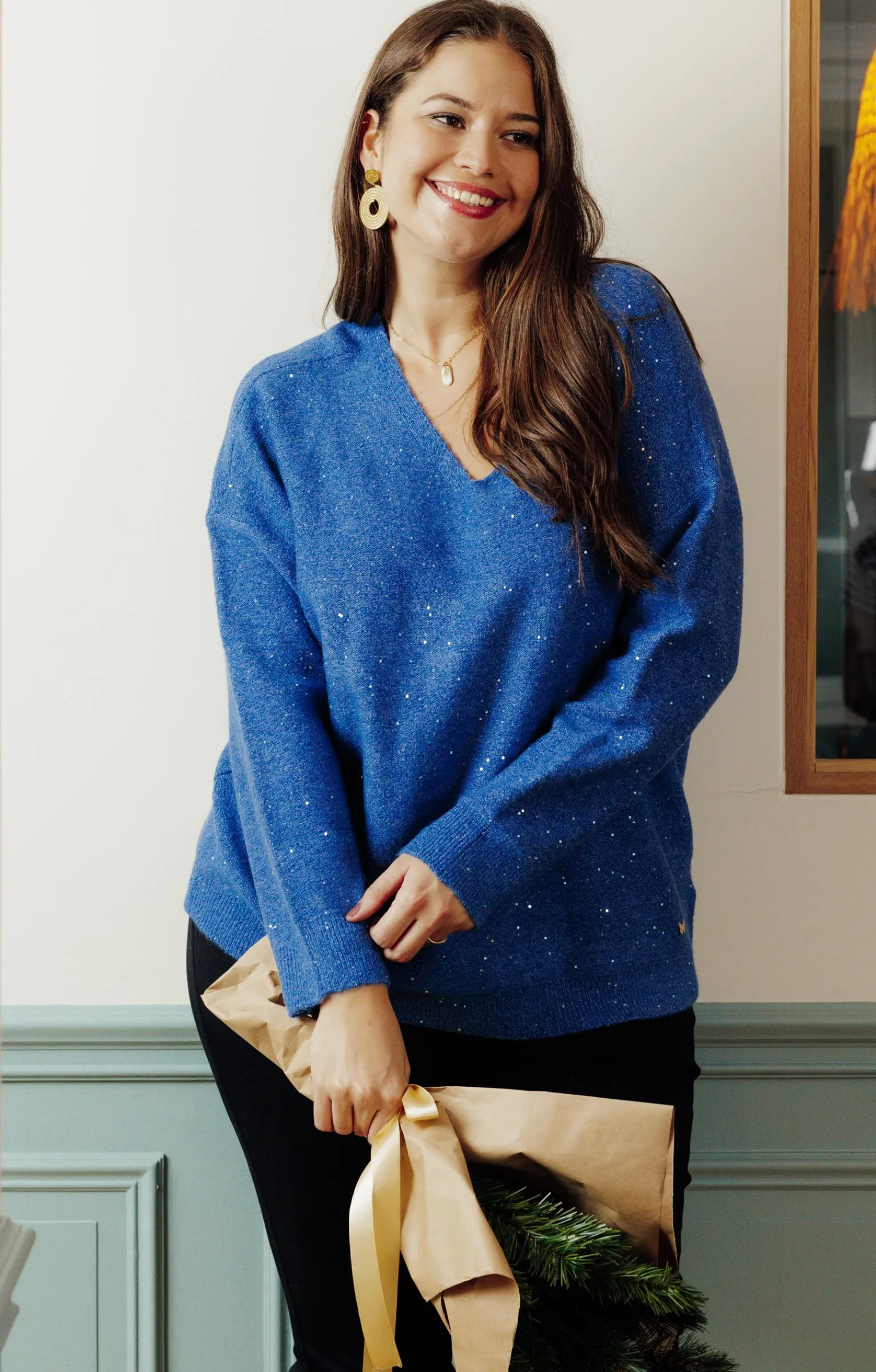 Notre mannequin Delia mesure 1m71 et porte un pull taille 1.